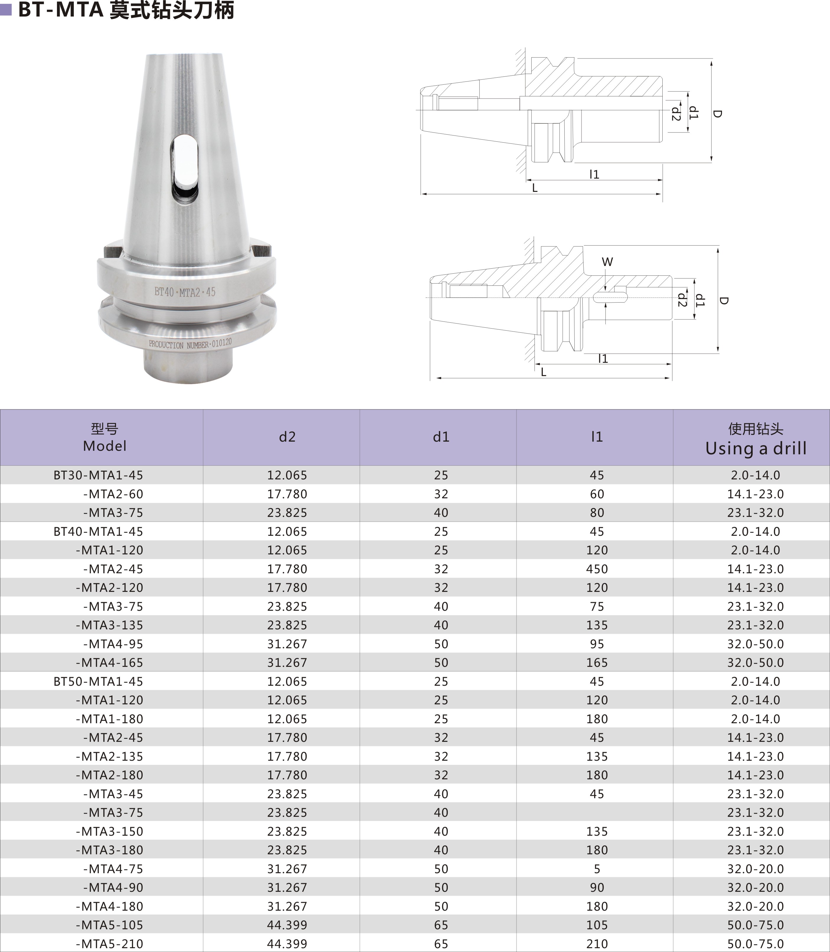 深圳市铭阳模具有限公司>产品中心>>数控刀柄>>BT-MTB莫式锥度刀柄