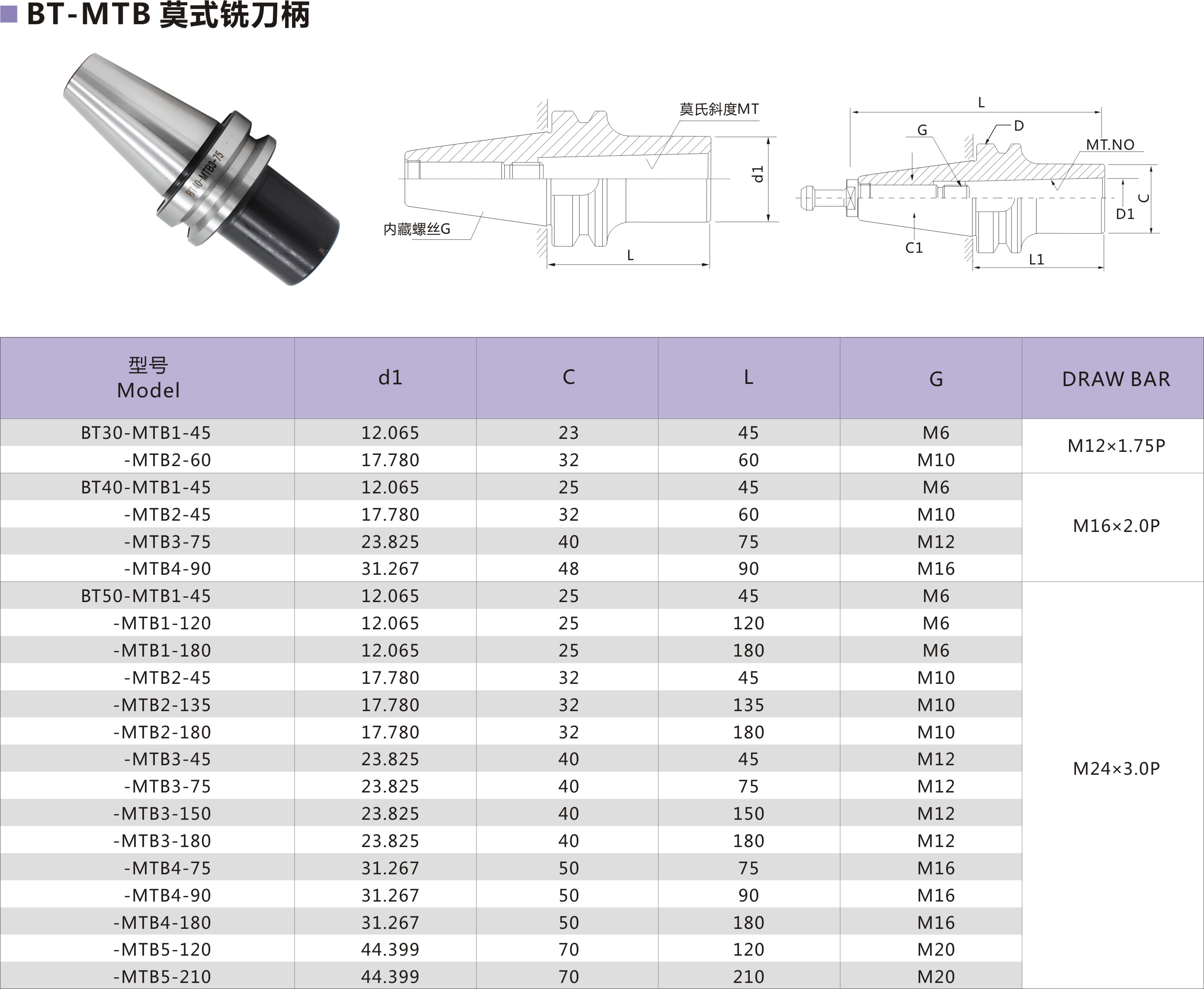 BT莫氏锥度刀柄选型表