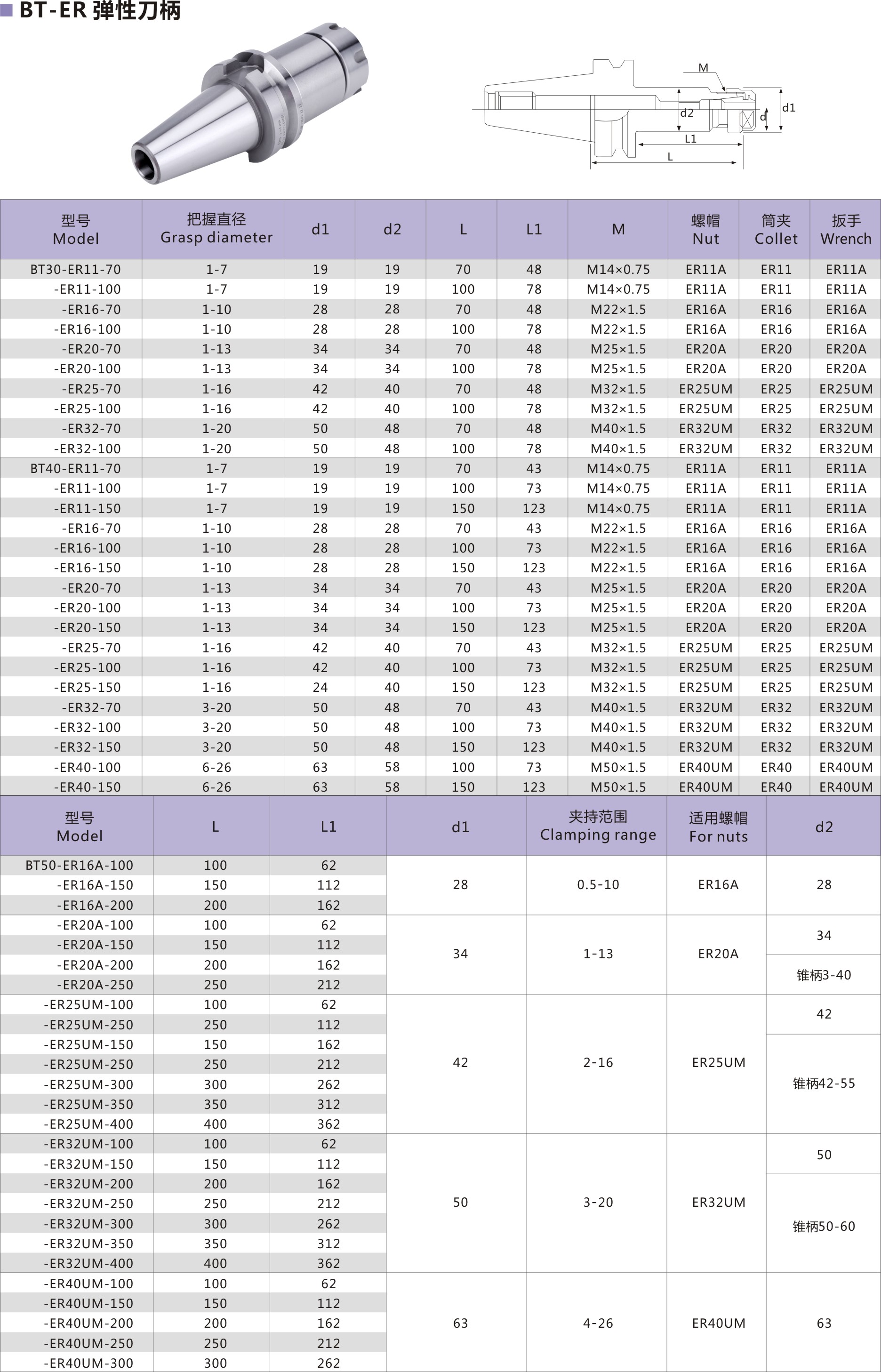 ER数控铣刀柄选型表。