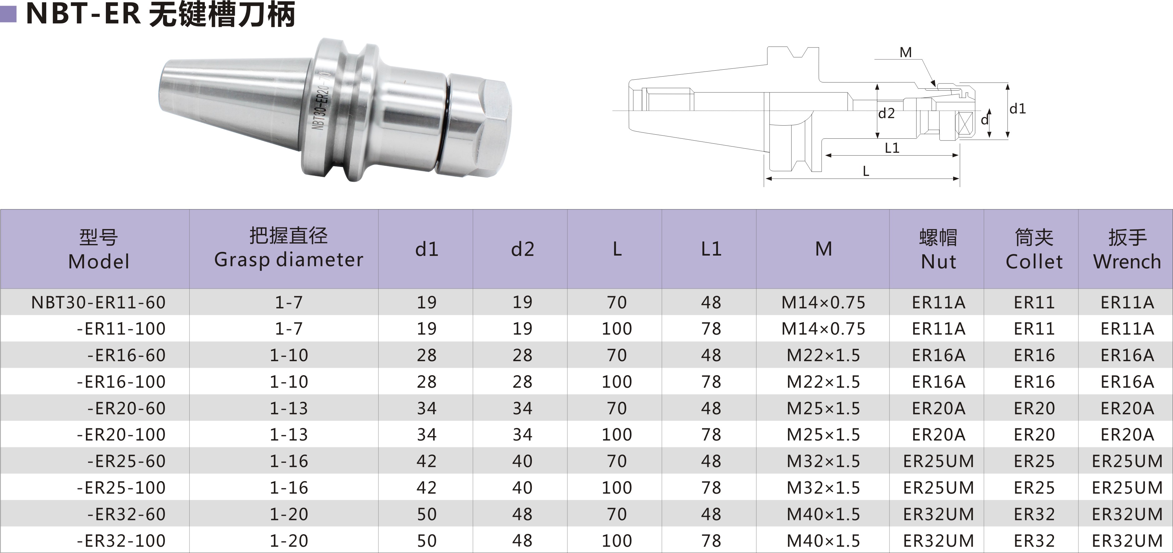 3、NBT-GER无键槽高速ER刀柄