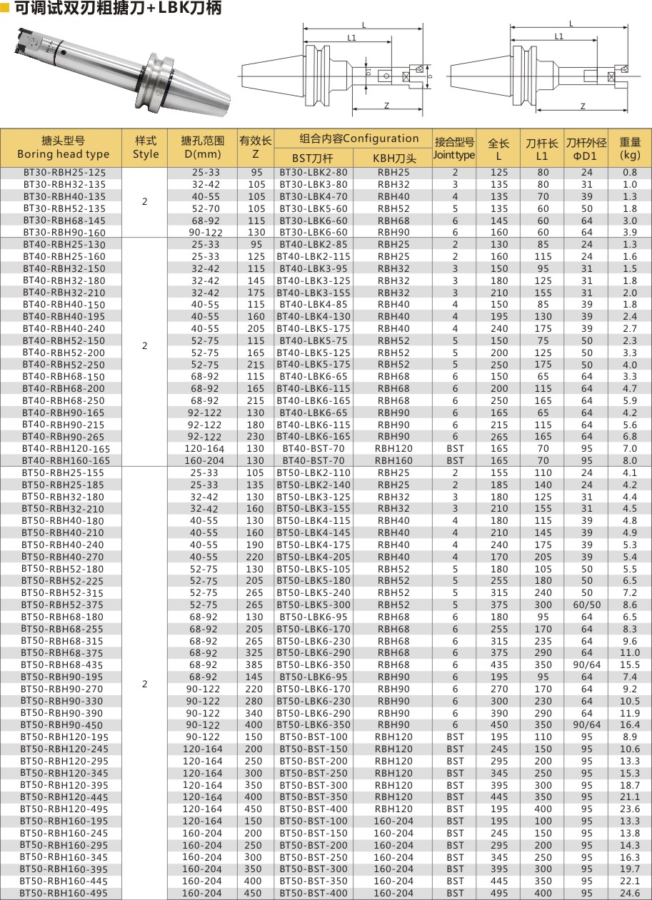 可调式双刃粗搪刀柄+LBK刀柄
